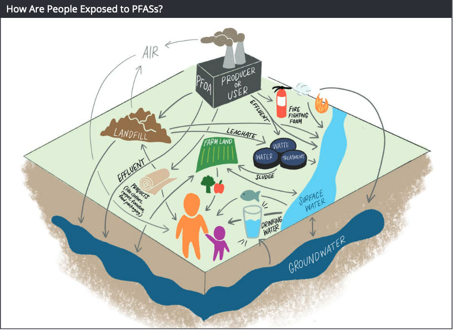 اکنون مطالعات علمی نشان میدهد که PFAS برای سلامت انسان و زندگی حیوانات در غلظتهای هزاران برابر کمتر از آنچه قبلاً تخمین زده میشد، خطرناک است. EPA گزارش می دهد که اثرات PFAS بر سلامتی شامل ارتباط با سرطان است. PFAS مواد شیمیایی با ماندگاری گسترده ای هستند که اجزای آن در طول زمان بسیار آهسته تجزیه می شوند. – به دلیل استفاده گسترده و ماندگاری آنها در محیط زیست، بسیاری از PFAS در خون انسان ها و حیوانات در سراسر جهان یافت می شوند و در مقادیر کم در انواع محصولات غذایی و در محیط وجود دارند. – PFAS در آب، هوا، ماهی و خاک در نقاط مختلف کشور و جهان یافت می شود. .