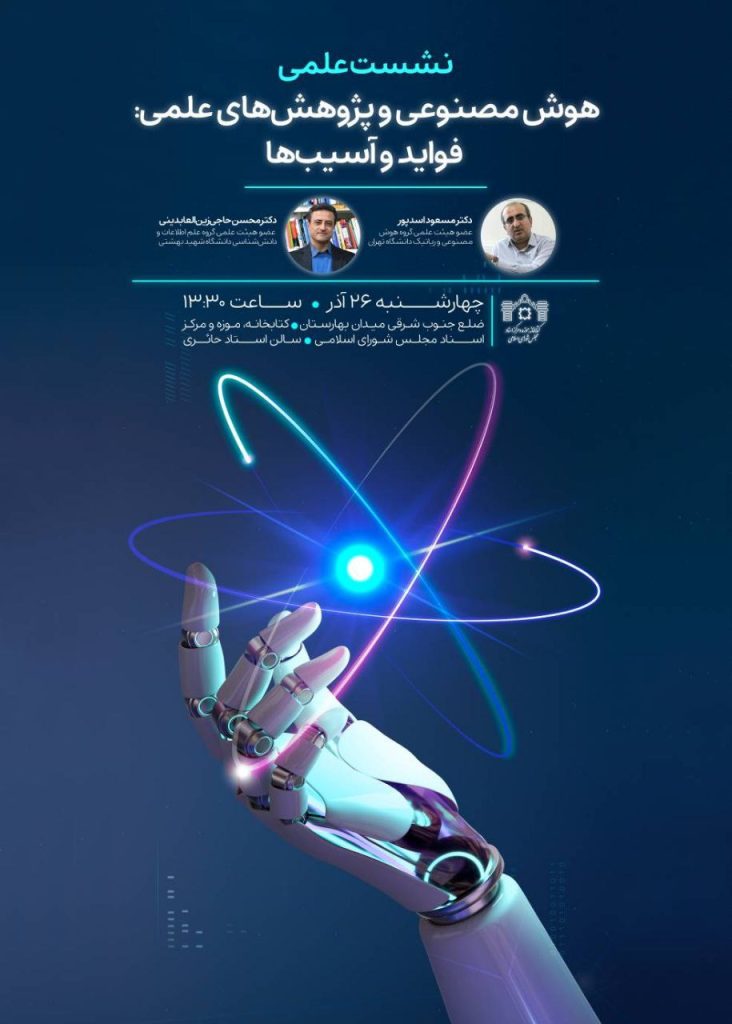 کسبوکارهای نوپا:همزمان با هفته پژوهش و فناوری، نشست علمی «هوش مصنوعی و پژوهشهای علمی: فواید و آسیبها» با حضور دکتر مسعود اسدپور عضو هیئت علمی گروه هوش مصنوعی و رباتیک دانشگاه تهران و دکتر محسن حاجی زینالعابدینی عضو هیئت علمی گروه علم اطلاعات و دانش شناسی دانشگاه شهید بهشتی برگزار میشود.