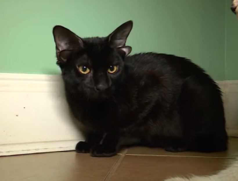 دابی، یک بچه گربه سیاه ۷ ماهه، با یک جفت گوش اضافی که شبیه یک جفت گوش دوم و کوچکتر است، متولد شد.