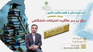 کسبوکارهای نوپا:نشست «طعم مالکیت فکری»، نزاع بر سر مالکیت اختراعات دانشگاه برگزار می شود. زمان: سهشنبه، ۱۱ آذر ماه ۱۴۰۴، ساعت ۱۶-۱۴ ورود برای عموم