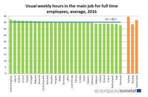 اروپایی ها چند ساعت کار میکنند؟براساس آمار در سال ۲۰۲۱، میانگین هفته کاری در سطح اتحادیه اروپا ۳۶.۴ ساعت به طول انجامید. با این حال،